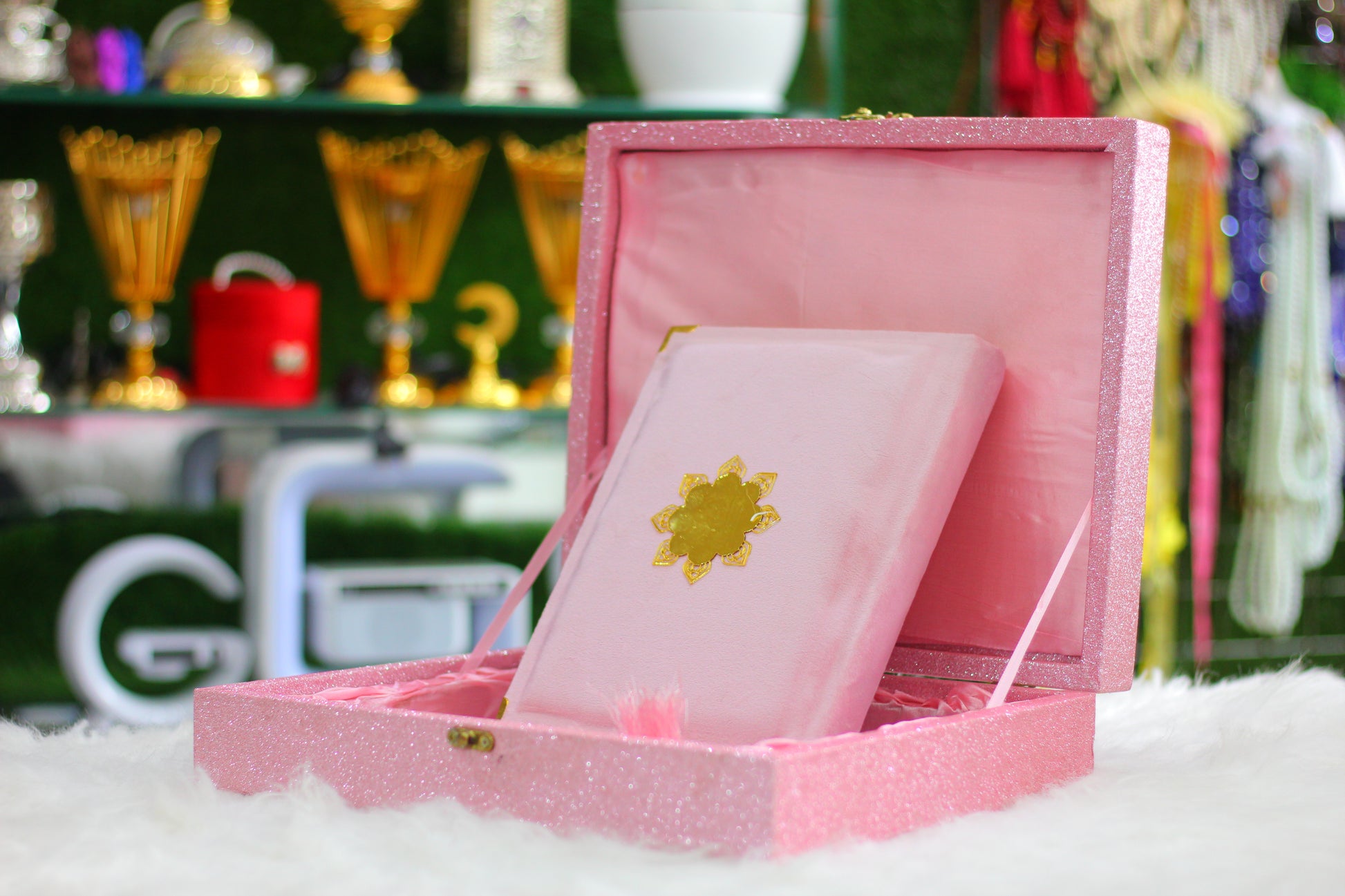 Pink Fragrance Quran with Glitter Wooden Box - Luxury Edition