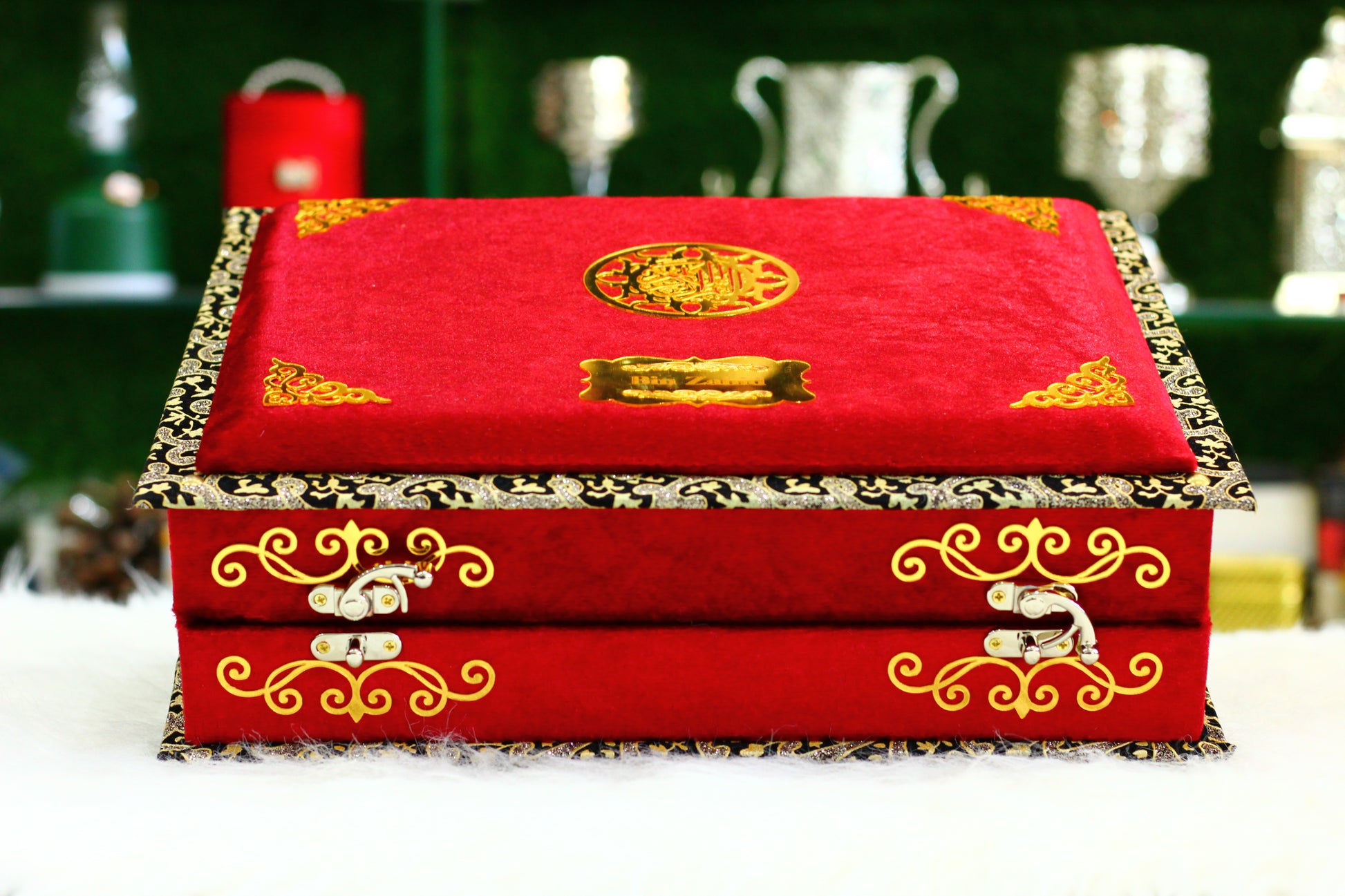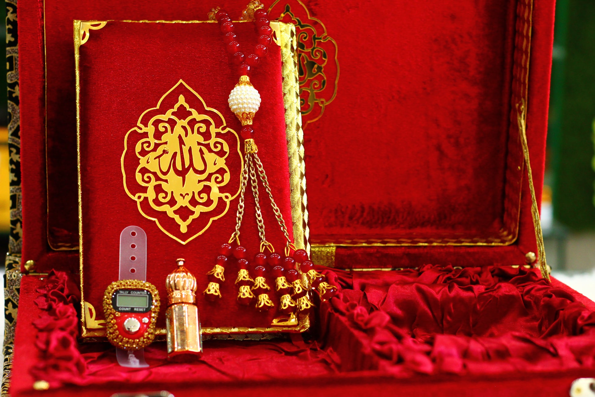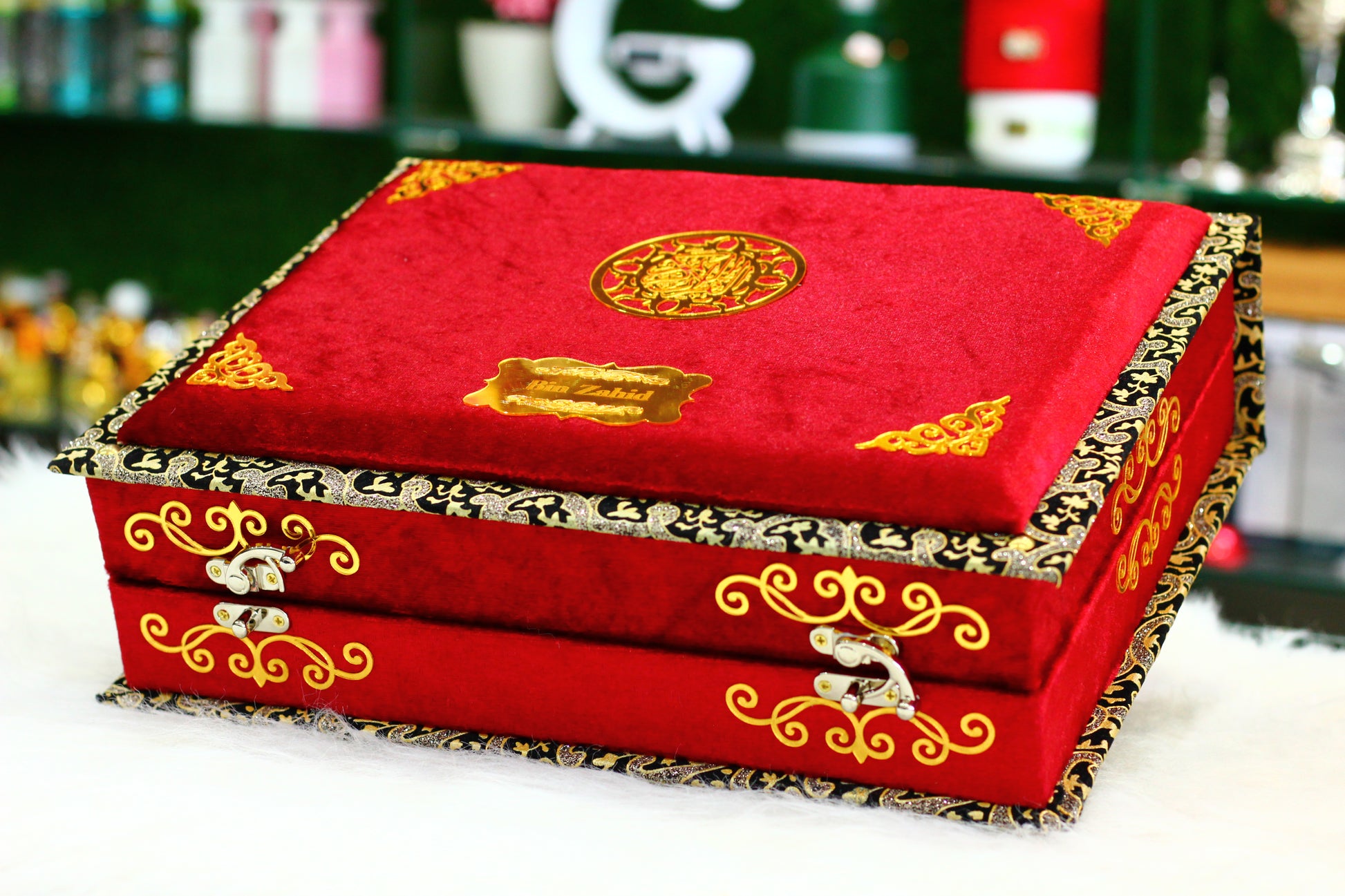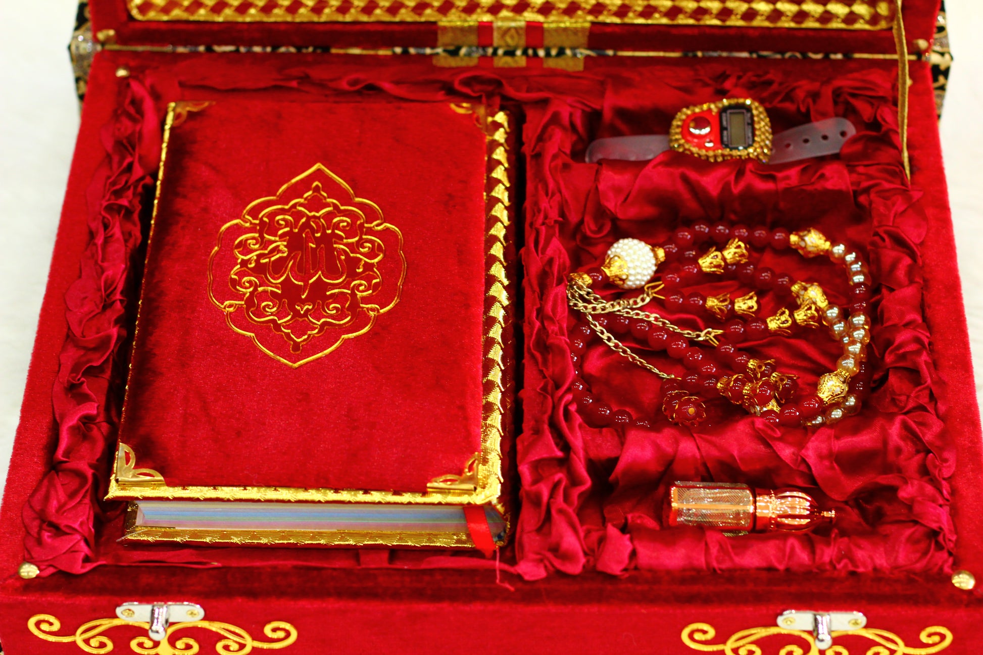 Red Bridal Box Quran Pak With Tasbih ,Attar And Counter - A Comprehensive Package for Your Spiritual Journey