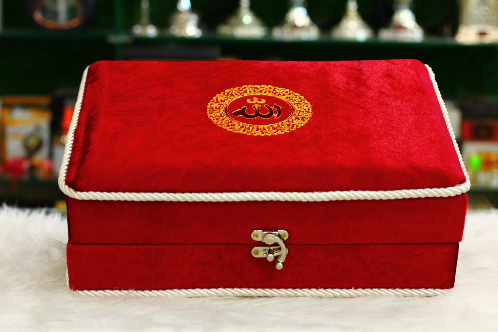 - A matching red box with a smooth matte finish, perfect for storing and protecting your Quran Pak