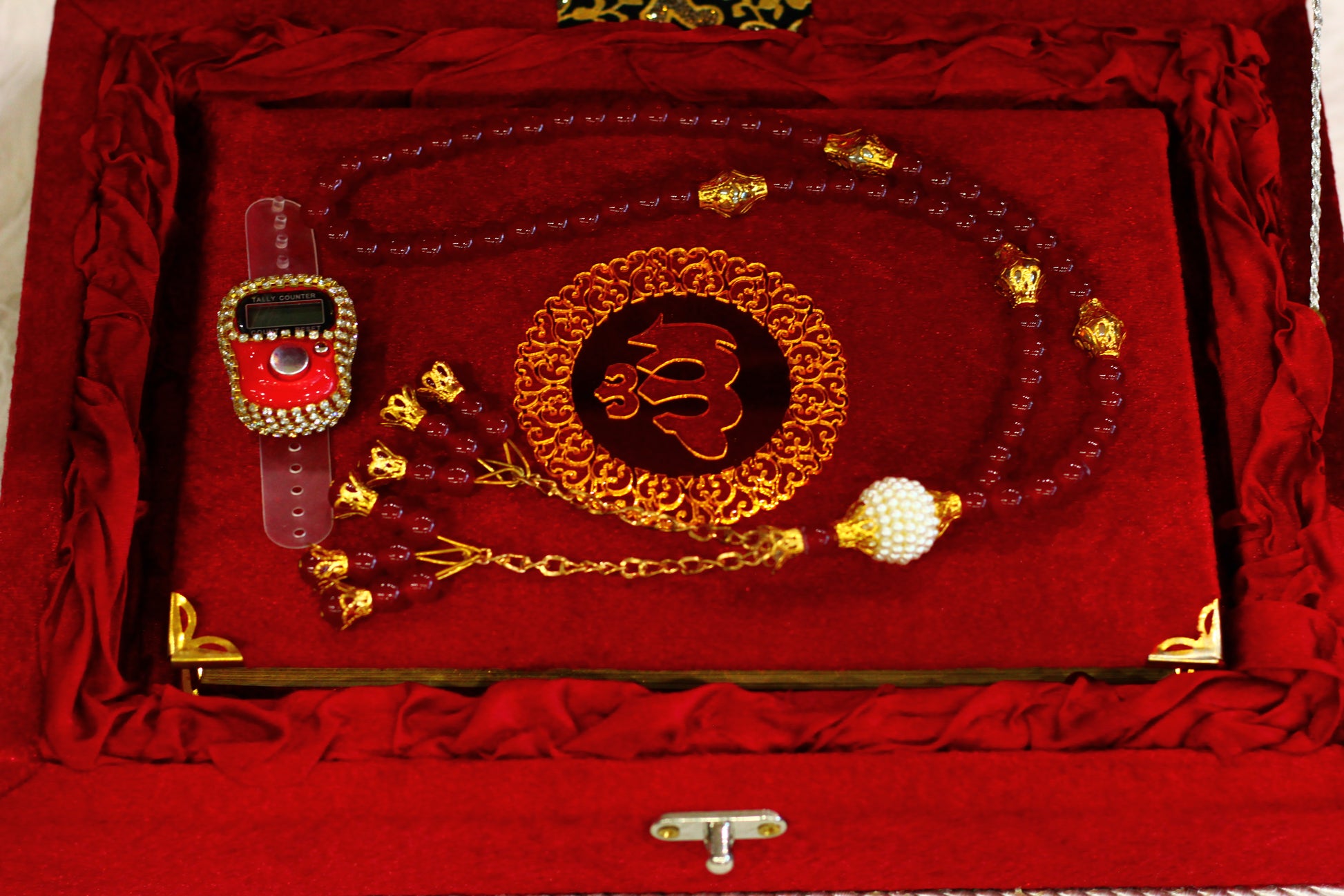 Our Red Quran Pak with Box and Tasbih Counter is a comprehensive and stylish set to support your spiritual journey. This thoughtfully designed package includes: