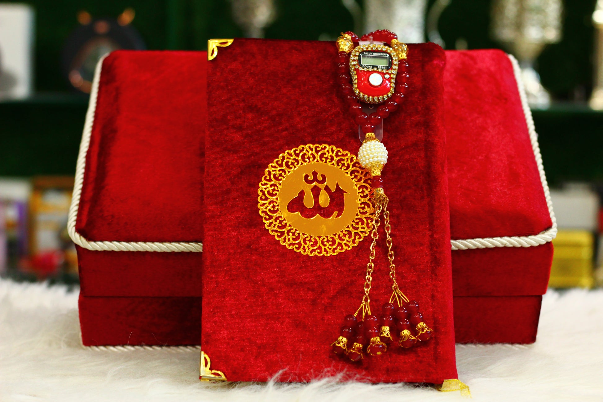 Enhance your prayer experience with our Red Quran Pak with Box and Tasbih Counter. Order now and enjoy a thoughtful combination of style, functionality, and spirituality!