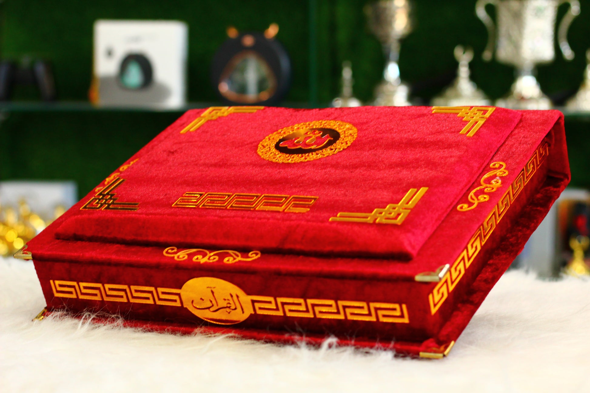 Red Quran Pak with Fancy Box Golden Border - A Luxurious and Elegant Way to Treasure Your Faith