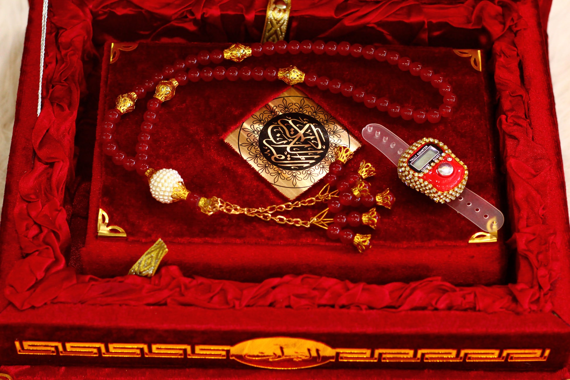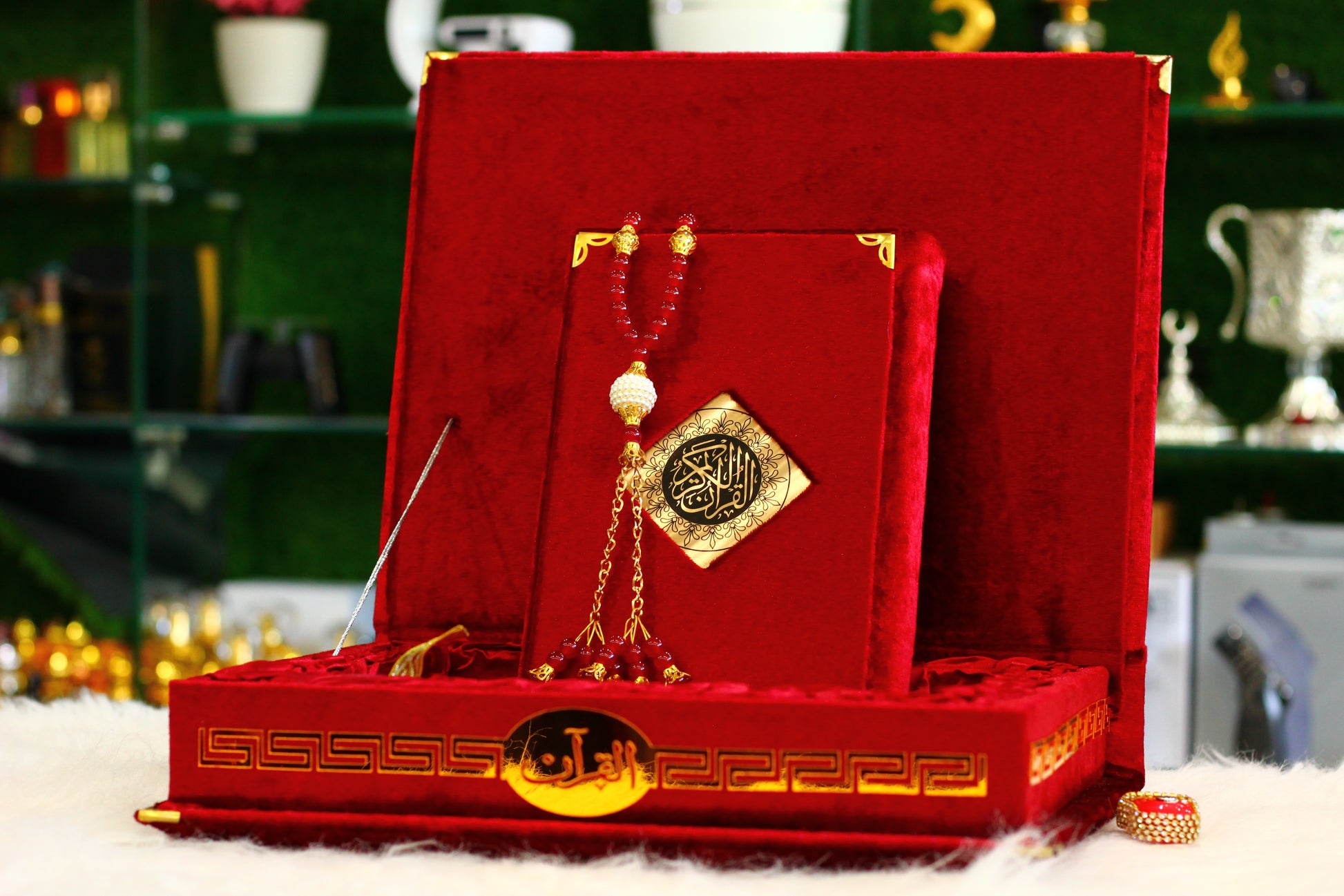 Our Red Quran Pak with Fancy Box is a stunning and premium way to carry and store your holy book. This exquisite set features:
