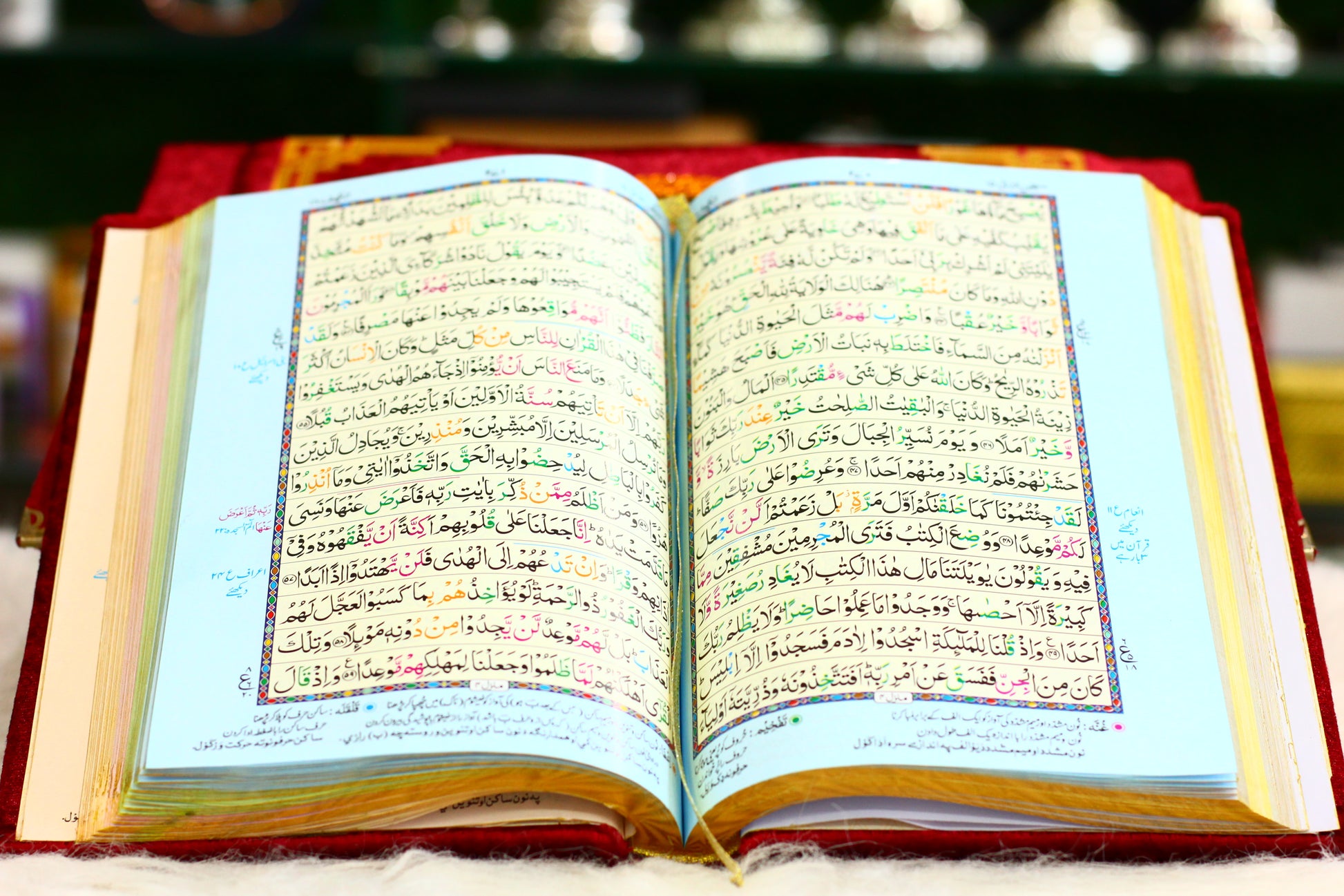 - A high-quality Quran Pak with a beautiful purple cover, printed with crisp and clear Arabic text