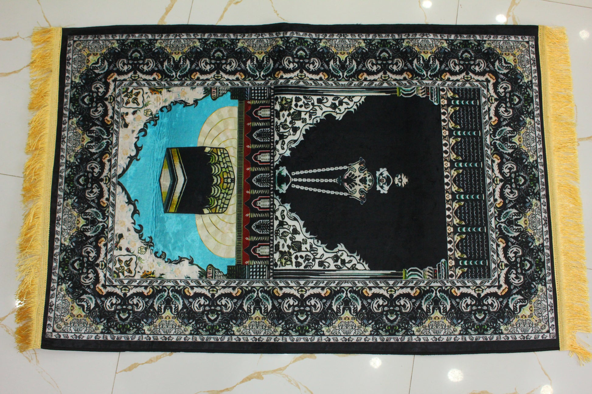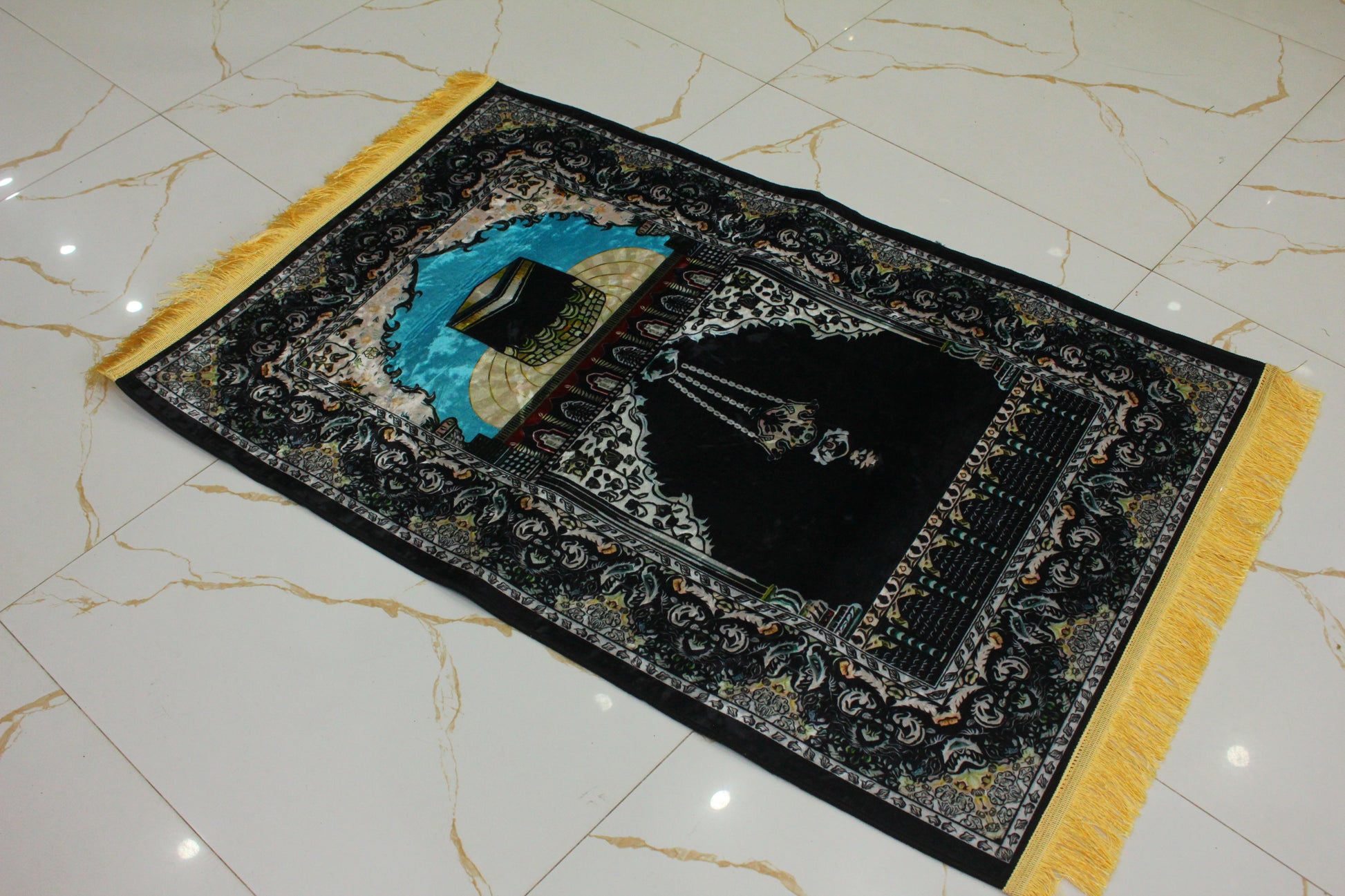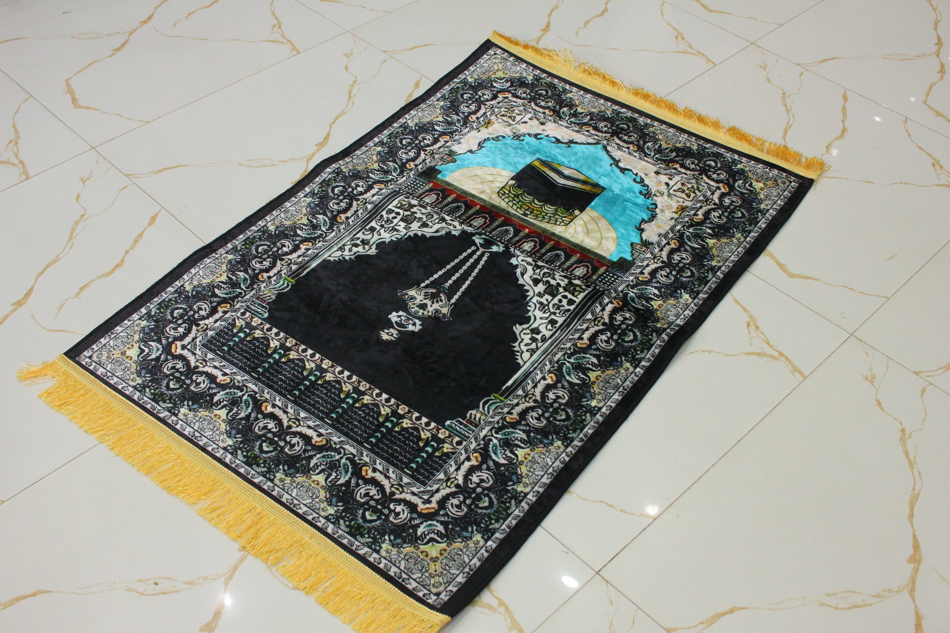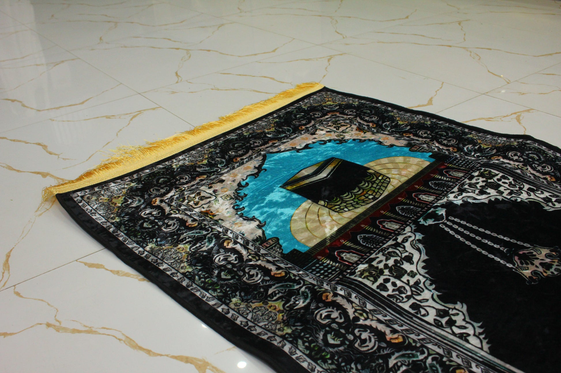 Perform your daily prayers in style and comfort with our Turkish Janamaz featuring a stunning Kaba design. This premium prayer mat is crafted with the finest materials and boasts a beautiful, intricate design inspired by the holy city of Mecca.